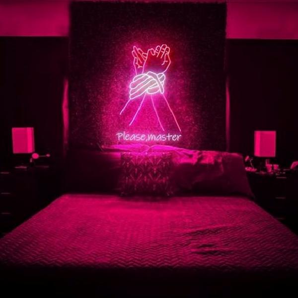 Neon tabelalar, mottolar ve kırmızı tonları yatak odasındaki enerjimizi yükseltecek gibi duruyor. Bu oda gerçekten partnerinizle keyifle vakit geçirebileceğiniz atmosfer sunan alanlardan biriymiş, bayıldık!