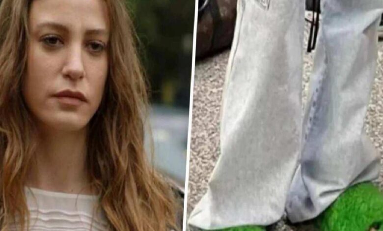 Serenay Sarıkaya’nın 50 bin TL’lik yeşil tüylü terlikleri sosyal medyada gündem oldu; moda ve zarafet zirveye taşınıyor.