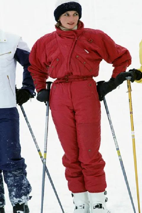 Prenses Diana’nın kırmızı kayak tulumunu bilmeyen yoktur diye düşünüyoruz. Di’nin, Londra’daki Harrod’s’tan satın alınan tek parça Head tulumu, kayak kıyafeti ilhamı söz konusu olduğunda baş köşede yerini alıyor. 1985’te Malbun, Lihtenştayn’da kayak tatilinden bu stil anı, klasik altın sarısı kabarık saçlarıyla hafızalara kazınıyor.