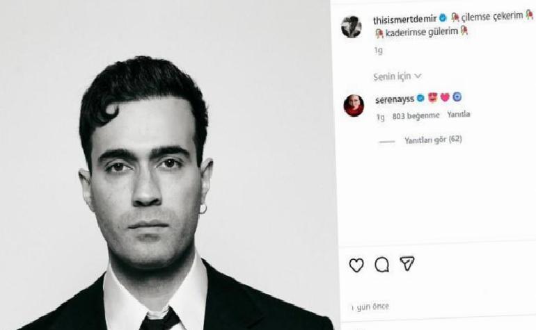 Serenay Sarıkaya, sevgilisi Mert Demir’in yeni paylaşımına kalp ve nazar boncuğu emojisi ekleyerek çıkan ayrılık söylentilerini yalanlamış oldu.