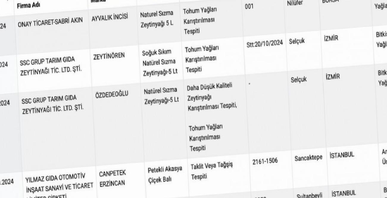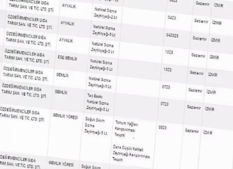 Birçok firmanın ise ‘naturel sızma zeytinyağı’ diye sattığı eserlere tohum yağı ve daha düşük kalitede zeytinyağı karıştırdığı ortaya çıktı. İşte o liste…