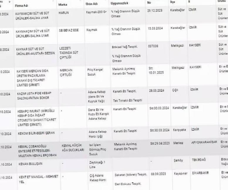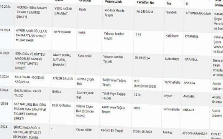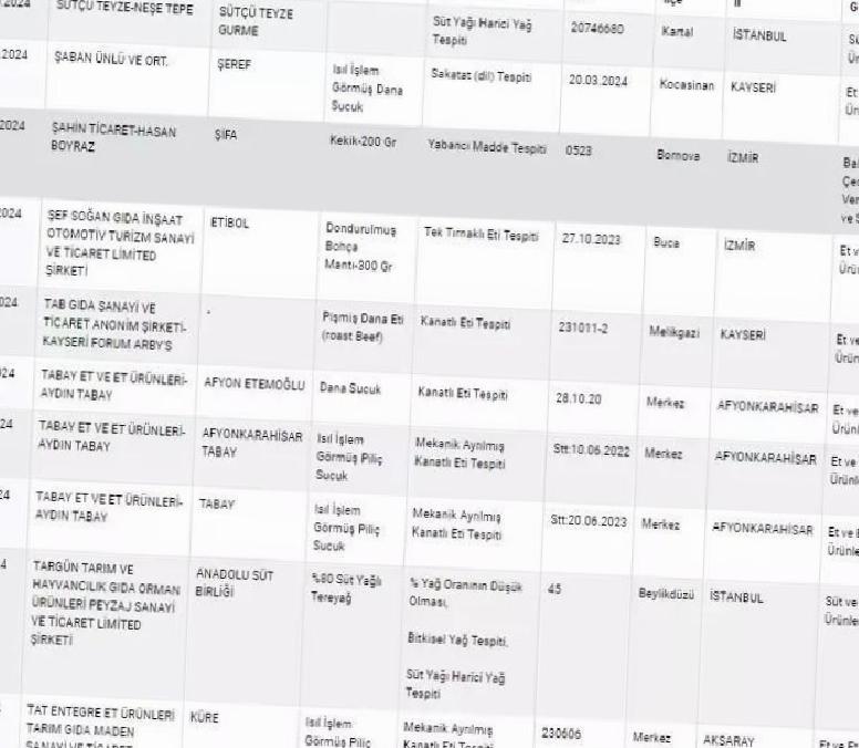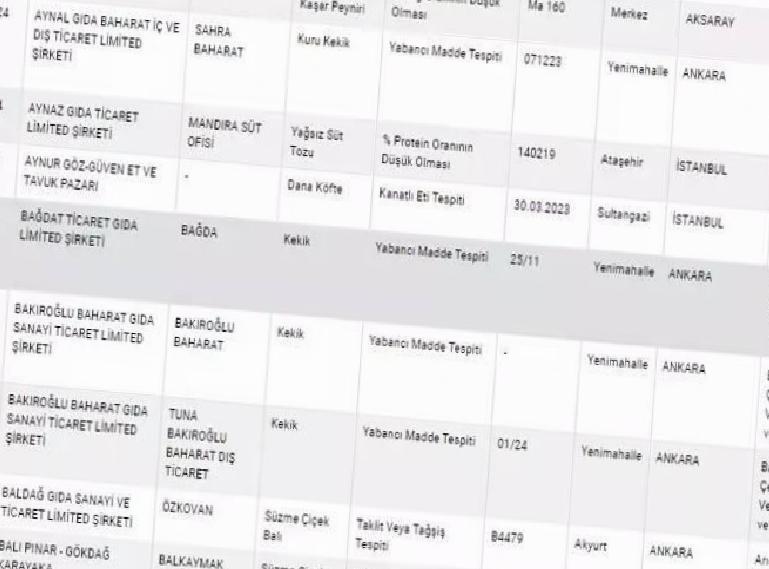 İşte besin sahtekarları listesine eklenen son firmalar ve eserleri: