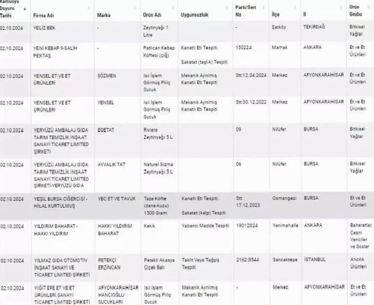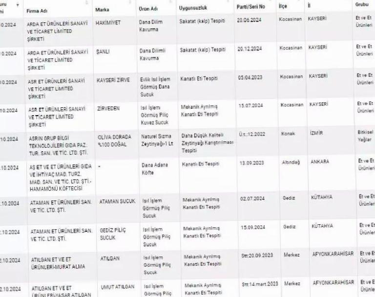 Tarım ve Orman Bakanı İbrahim Yumaklı, Taklit ve hileli besin listelerinin artık anlık olarak elektronik ortamda tüketicilerle paylaşılacağını lisana getirmişti. Bakanlık 31 Ekim’de yayınladığı listeye yeni firmaları da ekledi. Kar uğruna insan sıhhatini hiçe sayan vicdansızların bu sefer de vatandaşa dana diye at ve eşek eti yedirdiği ortaya çıktı. İşte hileli eserlerde bakanlık tarafından paylaşılan yeni liste…
