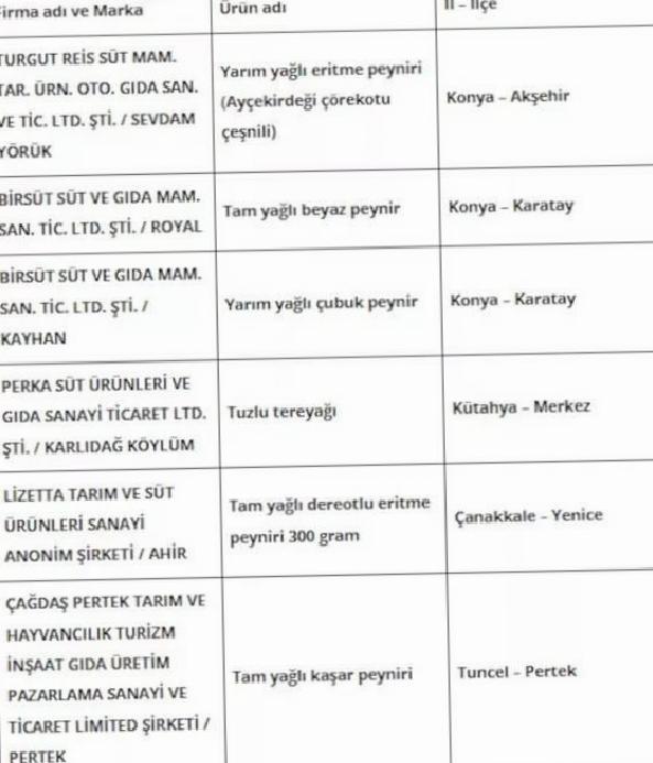 Tarım ve Orman Bakanlığı, sağlığı tehdit edebilecek tereyağı ve peynirlerin yer aldığı 17 Ekim tarihli listeyi yayımladı.