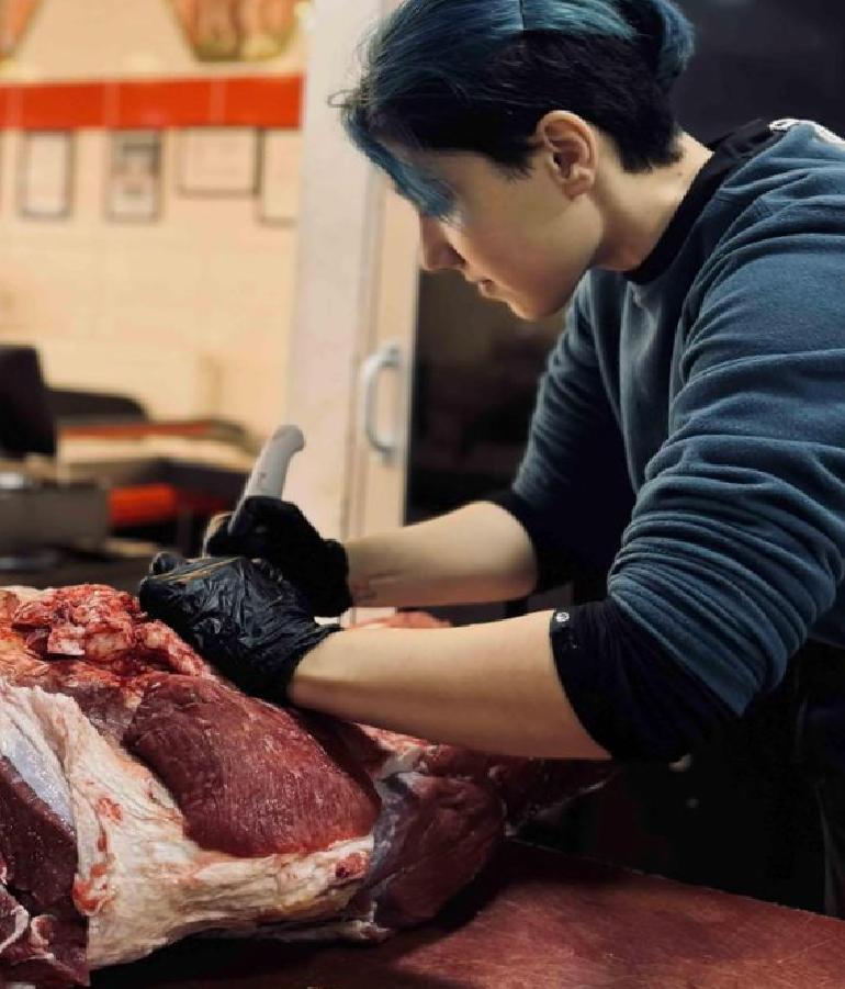 Kasaplığın, dışarıdan göründüğünden çok daha fazla güç gerektiren bir meslek olduğunu lisana getiren Başak, “Özellikle birinci vakitlerde ağır etleri taşımak, modülleri kaldırmak üzere fizikî güç isteyen işlerde hayli zorlandım. Bir bayan olarak bu süreçte kollarımın çok ağrıdığı, hatta vakit zaman taşıyamadığım durumlar bile oldu. Ama vakitle hem bedenim bu tempoya alıştı hem de işi daha gerçek tekniklerle yapmayı öğrendim. Güç gerektiren işleri yalnızca kuvvetle değil, gerçek sistemlerle yapmanın ne kadar kıymetli olduğunu fark ettim. Bu da süreci benim için daha yönetilebilir hale getirdi. Elhasıl benim için zorluk, hünerden çok fizikî adaptasyon süreciydi. Teknik kısmı öğrenmekten fazla, o tempoya ayak uydurmak asıl mücadeleydi” bilgisini paylaştı.