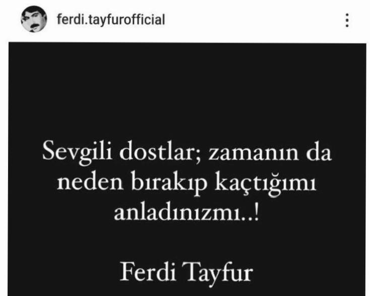 Ancak çok geçmeden Ferdi Tayfur şahsî hesabından bir görüntü yayımladı ve mesajın kendisine ilişkin olduğunu söyleyip, “Az evvel bir yazı yayınlattım. Tatlı’ya yazdırdım. Söylediğim de şu; Kim ne yapar, kendine yapar, dünyada ve ahirette… Hepinizi gözlerinizden öpüyorum” açıklamasını yaptı.